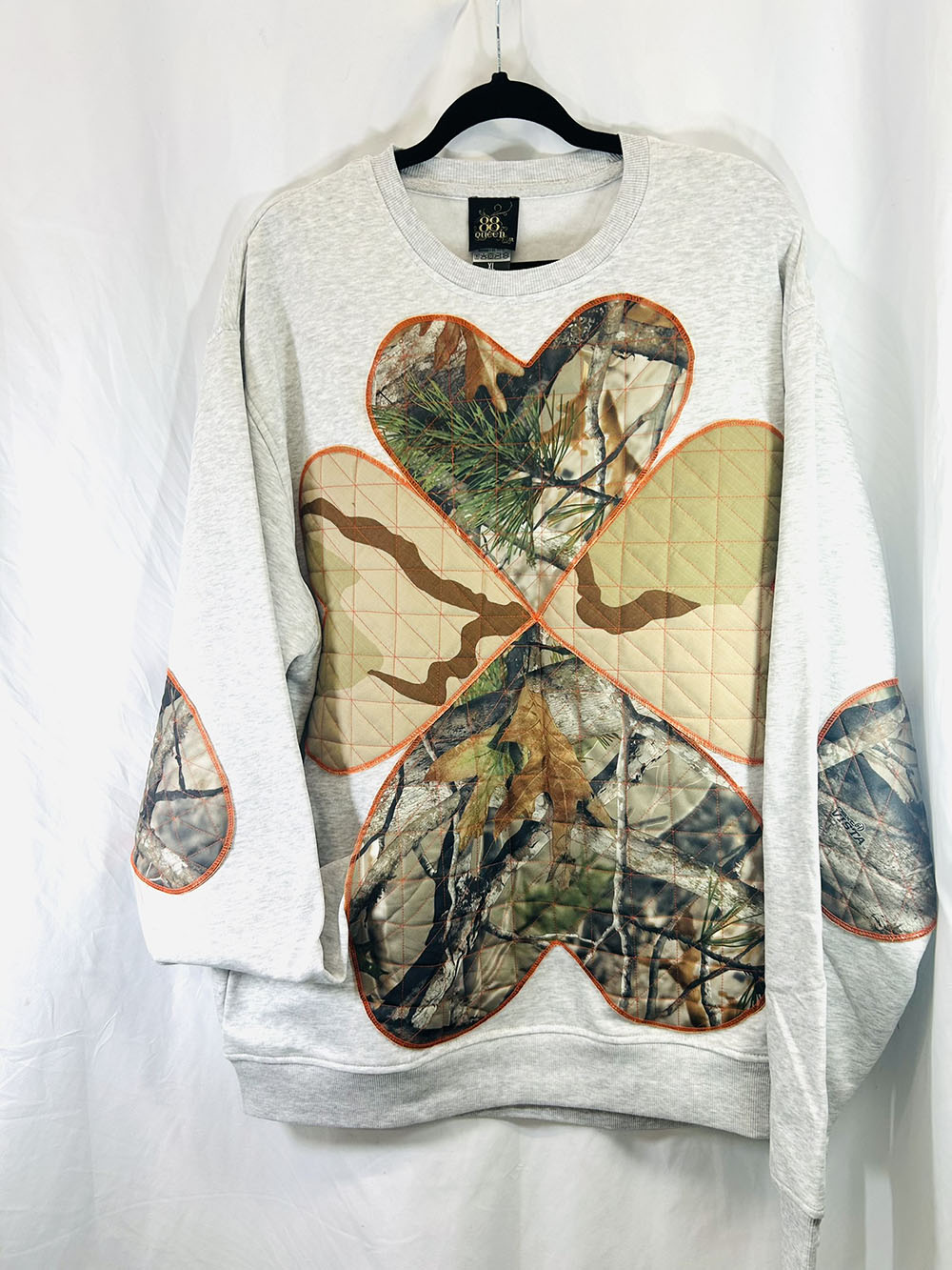 This very comfortable OVERSIZE sweater is 100% brushed cotton. The Hand Quilted appliqué at front is meticulously sewn by Michelle. This Sweater is a unique one of a kind item. Custom requests are alway well received. Size is an X Large .